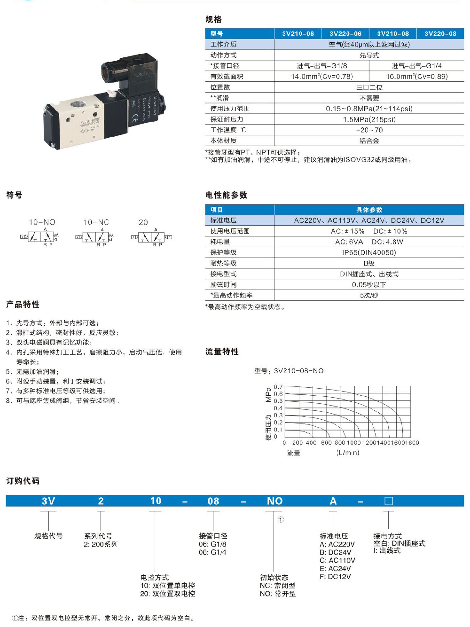 3V200系列电磁阀(三口二位)
