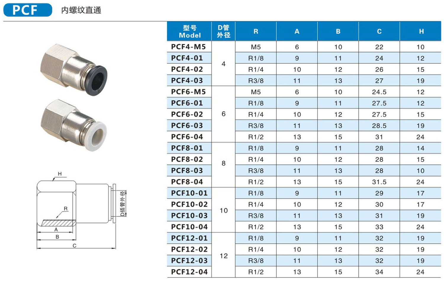PCF 内螺纹直通